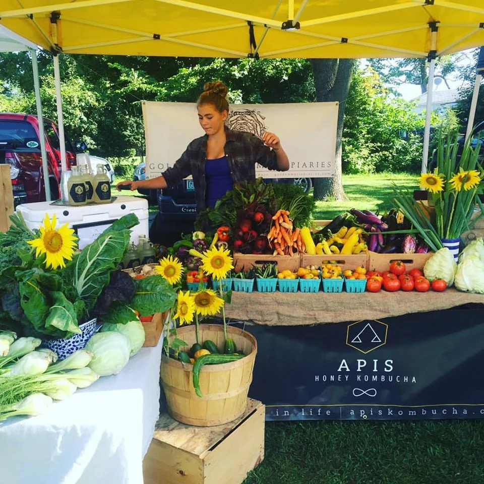 APIS Honey Kombucha began after experimenting and researching ways to brew kombucha using raw honey instead of sugar. After finding a Jun SCOBY to work with, we started testing a myriad of teas and honeys to find just the right combination. Not only does the raw honey in APIS create a more delicious and smooth kombucha, it's added health benefits are enough to call it a true elixir of life! While the traditional Jun is still a favorite of ours, APIS Honey Kombucha has begun to incorporate fruit and herbs from Golden Well Farm & Apiaries and other local organic farms to create flavors like cherry-tarragon, lemon verbena, crabapple and even Vermont-grown ginger.
